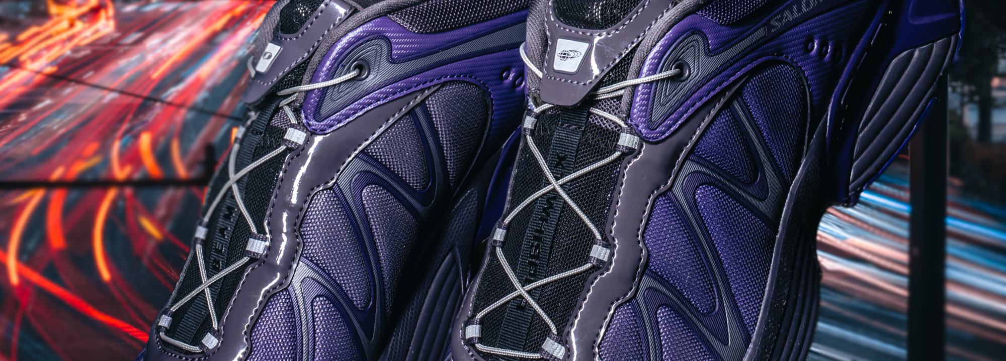 Salomon’s XT series has powered athletes for over a decade. For this collaboration, BEAMS introduces an exclusive XT-Whisper edition, featuring a futuristic purple gradient inspired by electronic glow. Glossy materials, asymmetrical color blocking, and dual branding on the tongue, heel, and insole highlight the partnership, while EVA cushioning and grippy lugs ensure performance from trail to city.
